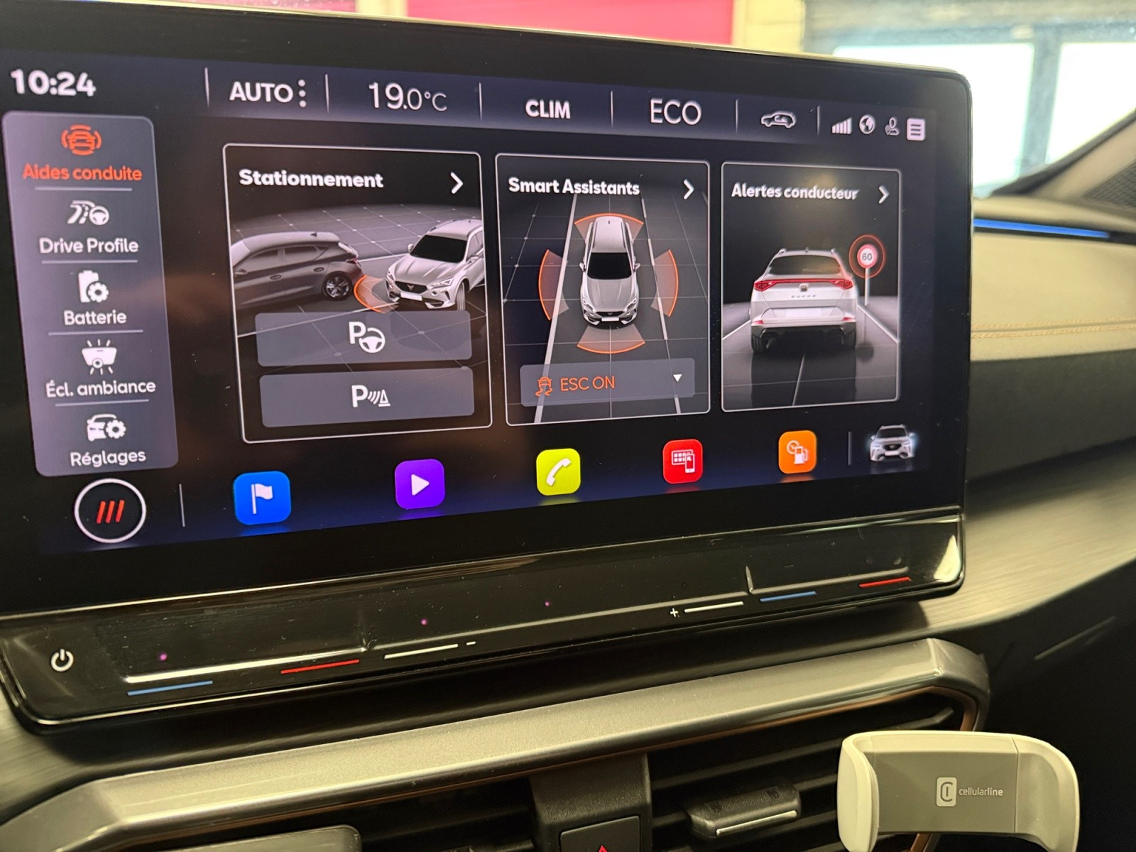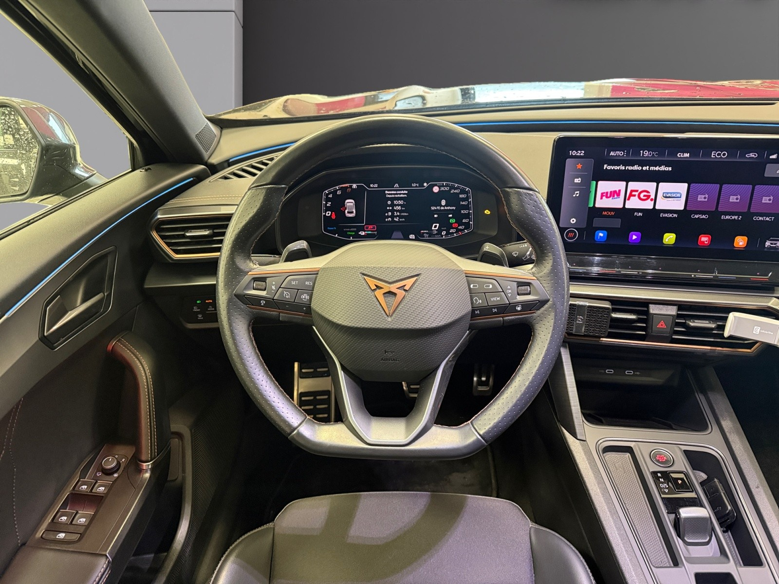 Eclairage de bienvenue avec projection du logo CUPRA au sol